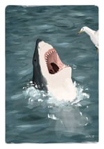 Illustration of a great white shark breaching. Nature at its most powerful.